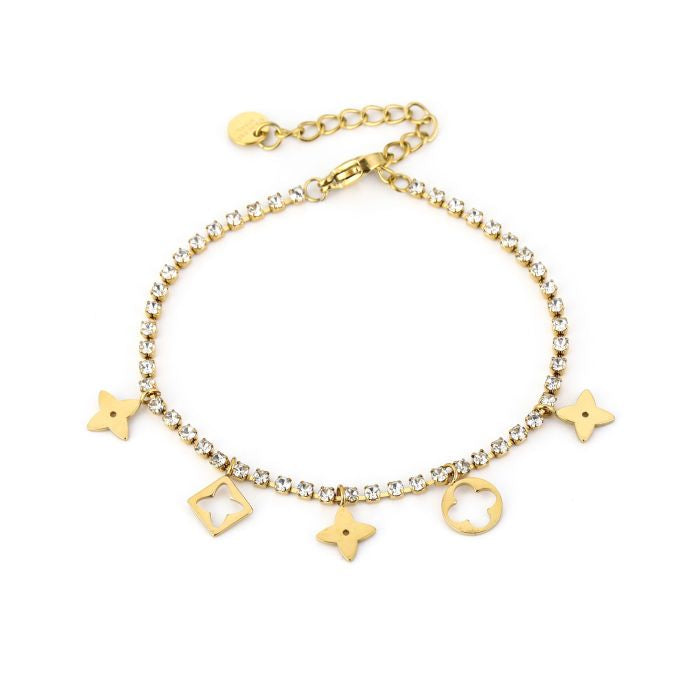 Der Celina Shine Bracelet vereint feminine Eleganz mit funkelnder Leichtigkeit. Die zarten Anhänger und strahlenden Zirkonia-Details verleihen dem Armband eine edle Ausstrahlung und machen es zum perfekten Highlight für jeden Look – ob im Alltag oder zu besonderen Anlässen.