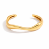 Das Gladia Armreif verkörpert fließende Eleganz und moderne Weiblichkeit. Die sanft geschwungene Form legt sich harmonisch um das Handgelenk und reflektiert das Licht mit einem warmen, goldenen Glanz. Minimalistisch und zugleich ausdrucksstark – ein Statement-Piece für Frauen, die zeitlose Schönheit lieben.