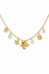 Die Melina Bloom Kette vereint verspielte Eleganz mit einem zarten floralen Design. Mehrere filigrane Blumenanhänger, kombiniert mit kleinen Perlendetails und einem dezenten Herz, verleihen der Kette einen romantischen und femininen Look. Das goldfarbene Design sorgt für einen warmen Glanz und macht dieses Schmuckstück zu einem besonderen Blickfang.